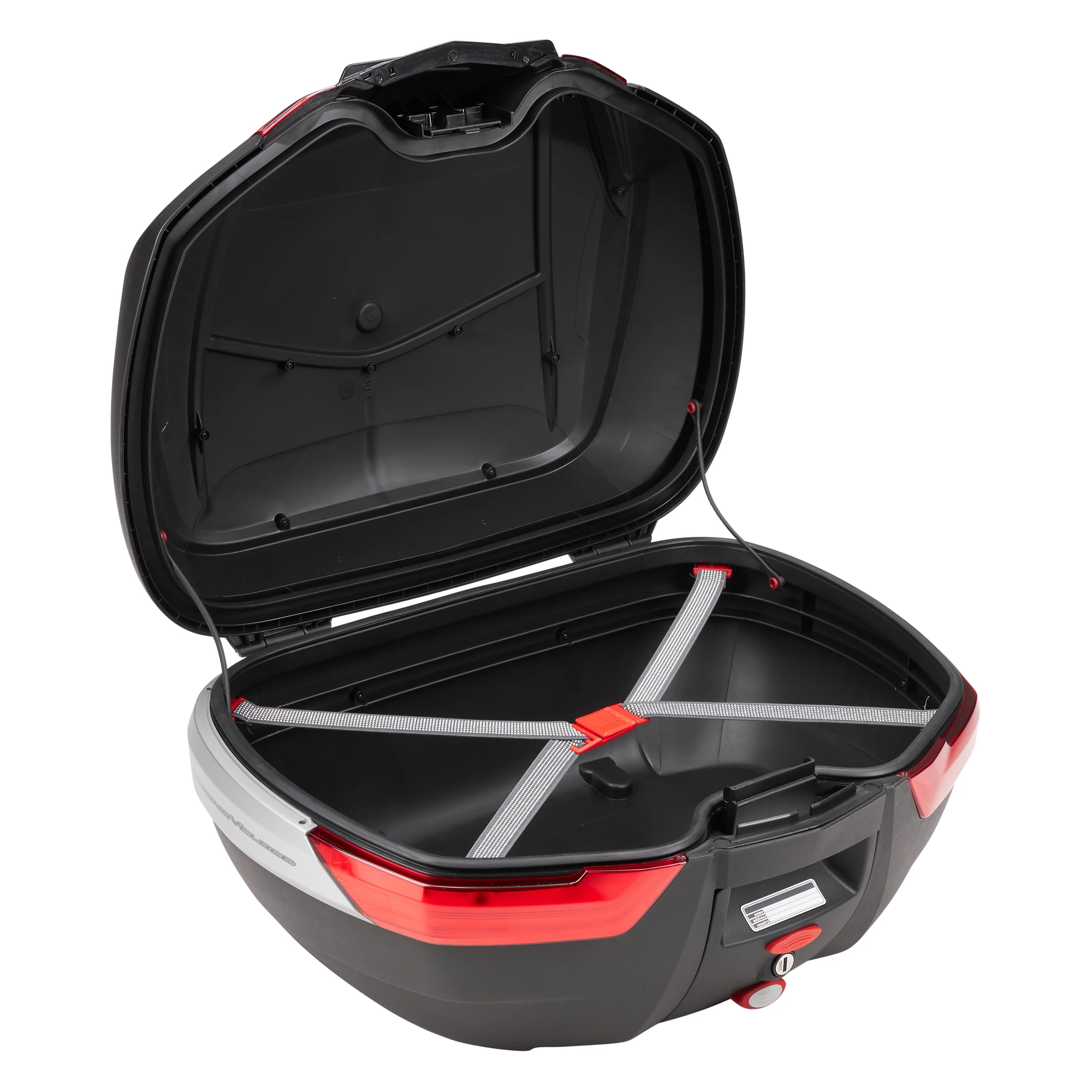 Pode armazenar até 2 capacetes modulares, apesar de seu tamanho compacto